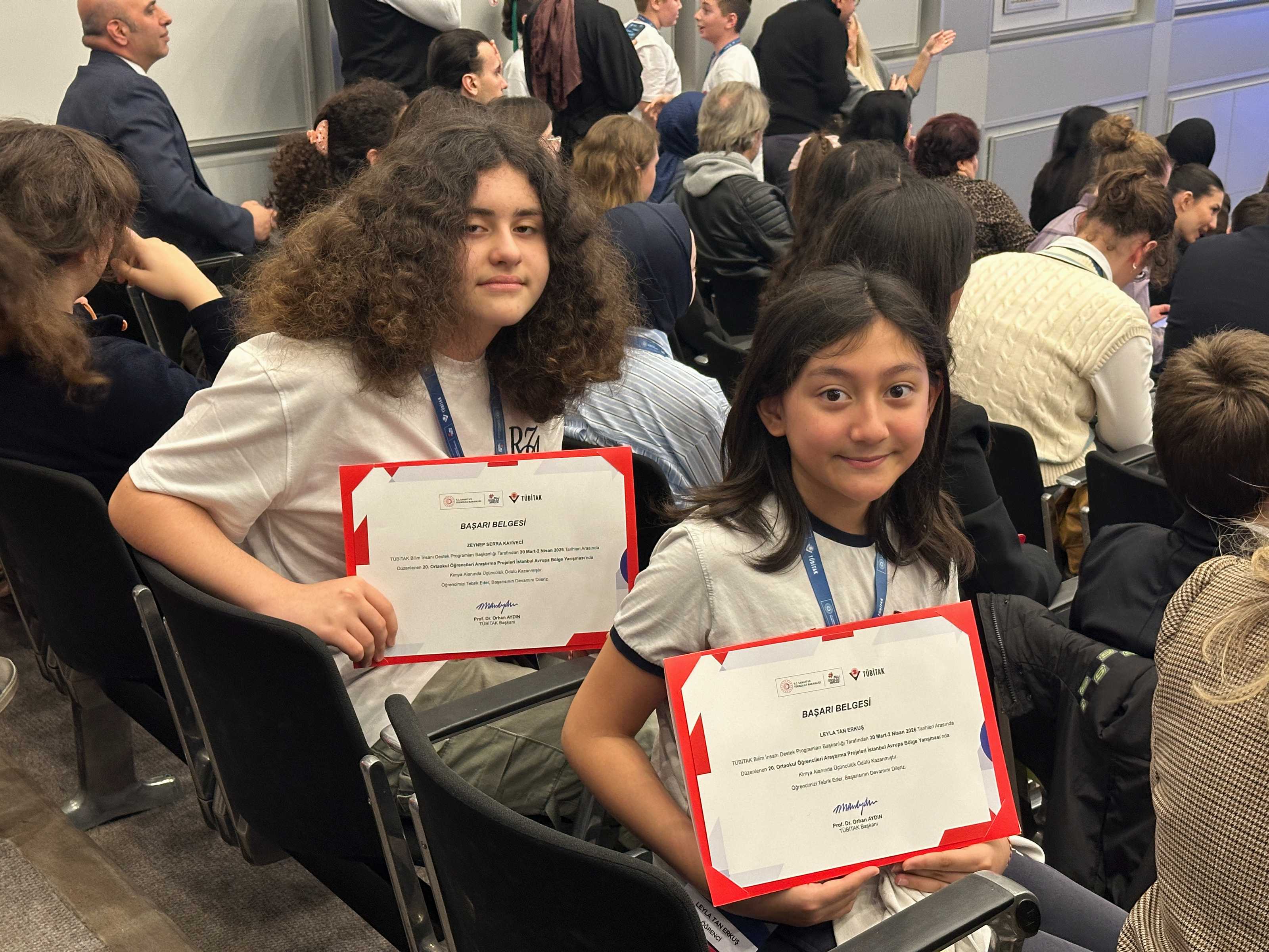 Bilimsel merakları ve titiz çalışmalarıyla bizleri gururlandıran öğrencilerimizi ve onlara rehberlik eden kıymetli öğretmenlerimizi tebrik ediyor, başarılarının devamını diliyoruz.