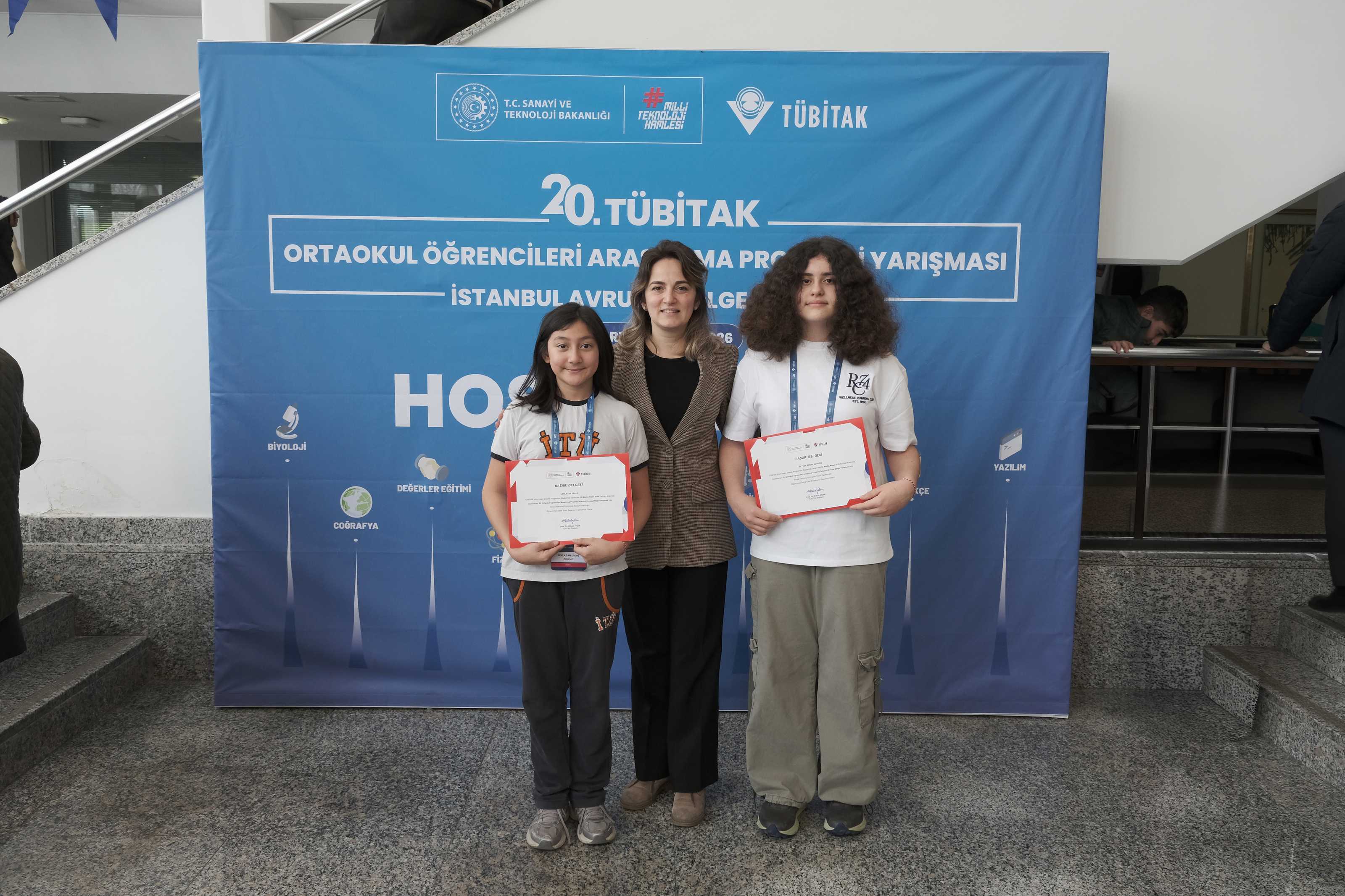 TÜBİTAK 20. Ortaokul Öğrencileri Araştırma Projeleri Yarışması’na katılan öğrencilerimiz, Matematik ve Fen Bilimleri alanlarında hazırladıkları yenilikçi projelerle bölge finallerinden iki ayrı üçüncülük derecesiyle dönerek bizleri gururlandırdı